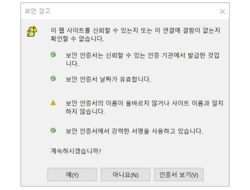 ÃÖ±Ù ³Ø½ººÏ CC ½ÇÇà½Ã À©µµ¿ì¿¡¼ À̹ÌÁö¿Í °°ÀÌ º¸¾È°æ°íâÀÌ ³ª¿É´Ï´Ù. À̰ÍÀº ³Ø½ººÏ CC ¹öÀüÀ» °³¹ßÇÏ´Â ´ç½Ã ¾È³»ÆäÀÌÁöÀÇ ¸µÅ©°¡ http·Î ½ÃÀÛÇϱ⠶§¹®À̰í À©µµ¿ì¿¡¼ http·Î µÇ¾îÀÖ´Â ¸µÅ©¿¡ ´ëÇØ¼´Â ¾È³»Ã¢À» Ç¥½ÃÇϱ⠽ÃÀÛÇß½À´Ï´Ù. ÀÌ´Â ¾È³» ÆäÀÌÁö ¸µÅ©¿¡ ´ëÇÑ ¾È³»À̱⠶§¹®¿¡ [¿¹] , [¾Æ´Ï¿ä] ¹öưÀ» Ŭ¸¯Çؼ ´ÝÀ¸½ÅÈÄ ³Ø½ººÏ ¼Ö·ç¼ÇÀ» »ç¿ëÇÏ½Ã¸é µË´Ï´Ù. ÇöÀç À̾ؾÆÀÌ¿ùµå ȨÆäÀÌÁö´Â https·Î SSLº¸¾ÈÀÎÁõÀ» Ãß°¡ÇÏ¿´À¸¸ç ÇÁ·Î±×·¥ »ç¿ë½Ã ³Ø½ººÏ ÀÌ¿ÜÀÇ ´Ù¸¥ ÀÎÁõ¼³ª ÇÁ·Î±×·¥À» ¼³Ä¡ÇÏÁö´Â ¾Ê¾Æµµ µË´Ï´Ù.