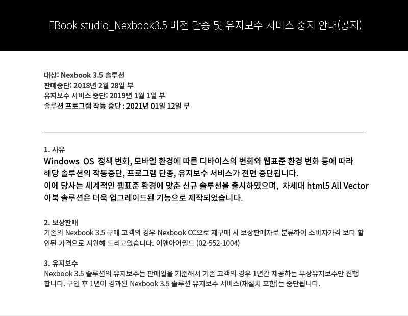 FBook_studio Nexbook3.5 ¹öÀü ´ÜÁ¾ ¹× ¼­ºñ½º ÁßÁö ¾È³»(Àç°øÁö)